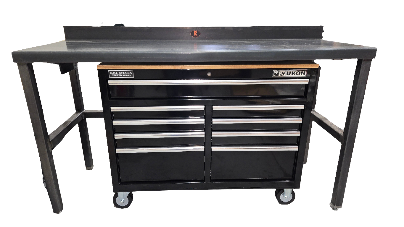 Custom sized work benches. 2'x6' and 40" height with 10 ga. work surface top. (shown.) Prices start at $850. Compare to $1,100 for current ones on the market.