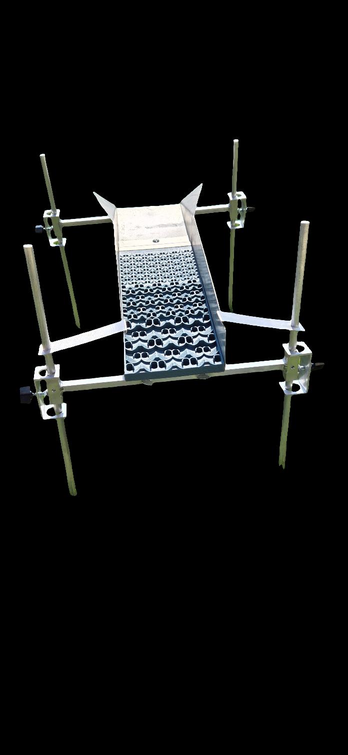 Includes 17" center aluminum KB Packer stand, 12" or 18" legs, (Please specify) leg clamps, sluice box holders. (Please specify 6" or 10" sluice) Nylon carry bag. Sluice box is not included.