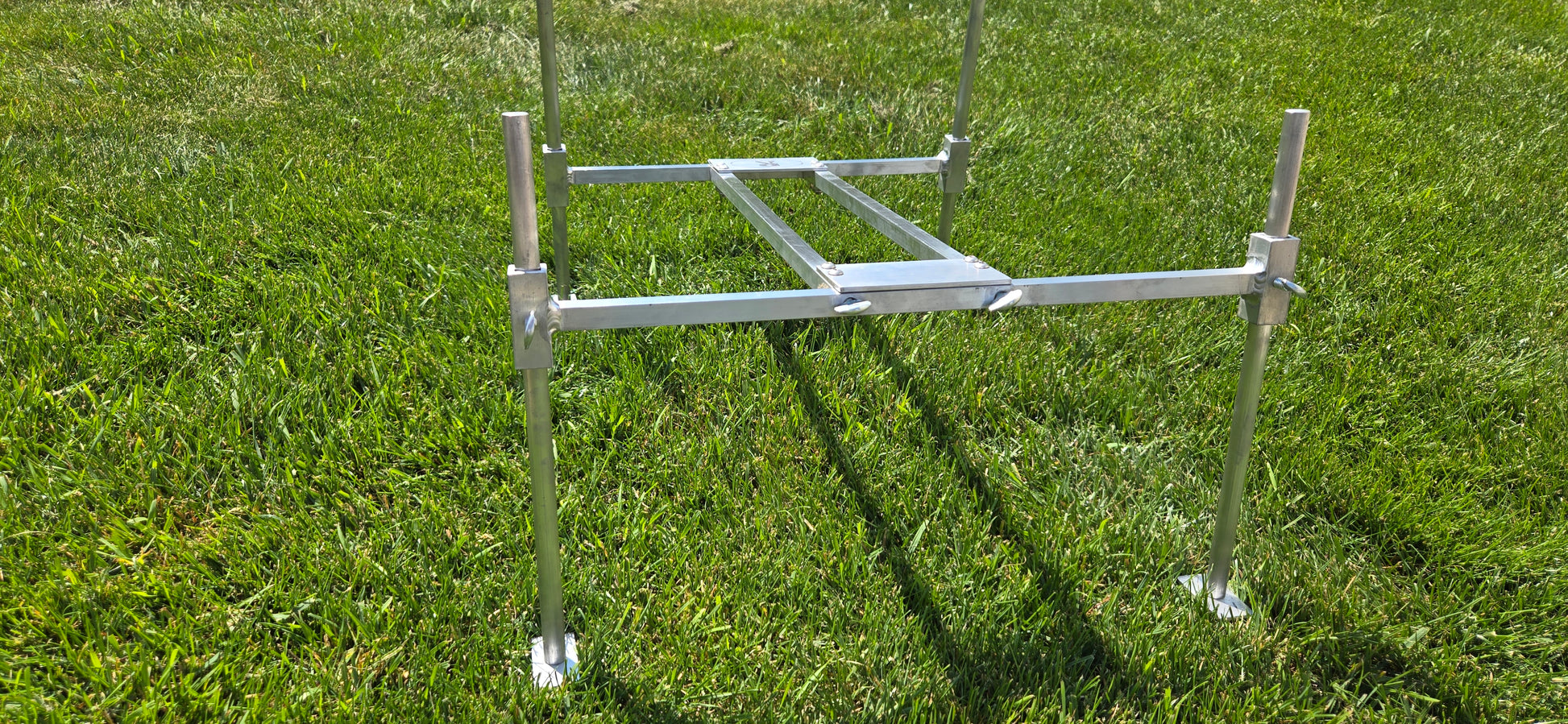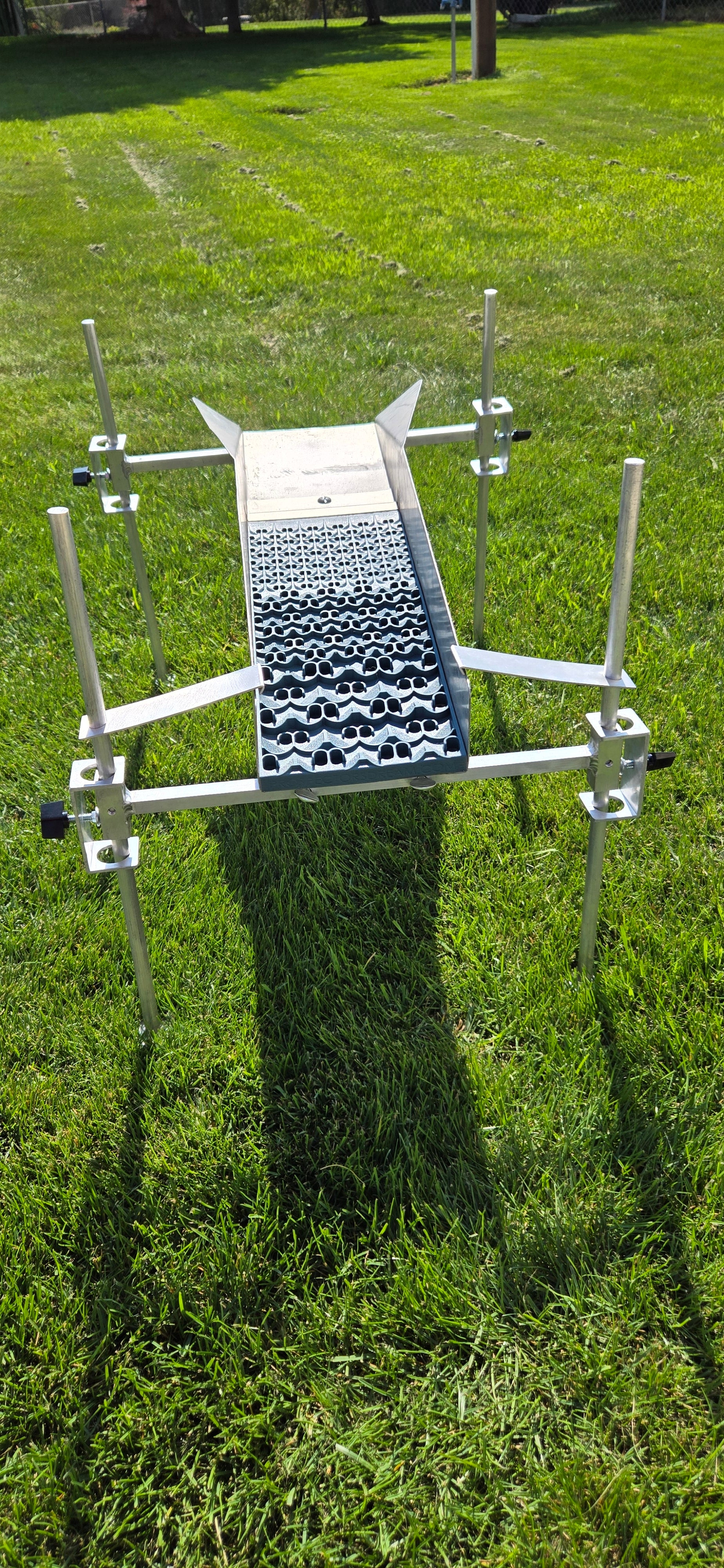 Light weight, breakdown, compact stand. Many options available. Comes with it's own nylon carry bag. No tools needed to assemble. Sluice in photos is used to show sluice hold downs and leg clamps in use and is not included.
